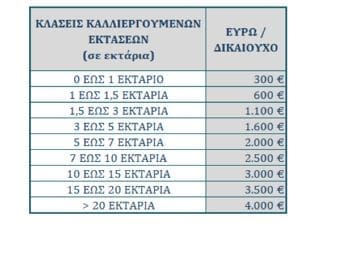 Το ύψος των ενισχύσεων ορίζεται σύμφωνα με τον παρακάτω πίνακα: