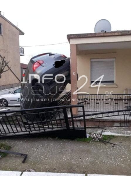 Οι ιδιοκτήτες της μονοκατοικίας, ακούγοντας έναν δυνατό θόρυβο, βγήκαν έξω από το σπίτι τους έντρομοι αντικρίζοντας ένα αυτοκίνητο «κρεμασμένο» πάνω στον φράχτη.