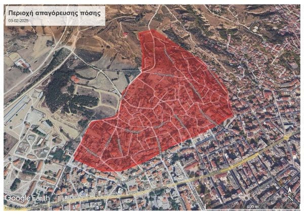 Ναούσης, Δελφών, Ευαγγέλου Στρατή, Καραϊσκάκη, Άννης Τριανταφυλλίδη, Βικέλα, 19ης Μαίου, Μαντώ Μαυρογένους, Κοραή και Ναυπλίου, καλούνται οι κάτοικοι της περιοχής αυτής να μη χρησιμοποιούν το νερό για πόση.