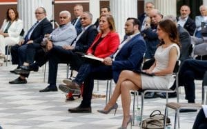 Η τομεάρχης του κόμματος για την Εργασία και την Κοινωνική Ασφάλιση τράβηξε τα βλέμματα για ακόμη μια φορά, με λευκό midi φόρεμα