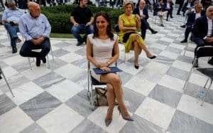 Η τομεάρχης του κόμματος για την Εργασία και την Κοινωνική Ασφάλιση τράβηξε τα βλέμματα για ακόμη μια φορά, με λευκό midi φόρεμα