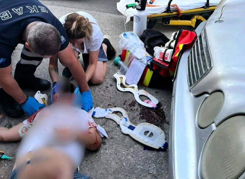 Αρχικά διακομίστηκε από ασθενοφόρο του ΕΚΑΒ στο Κέντρο Υγείας Μαδύτου, ωστόσο κρίθηκε απαραίτητη η άμεση μεταφορά του στο Νοσοκομείο Παπαγεωργίου της Θεσσαλονίκης για περαιτέρω νοσηλεία και εξειδικευμένη φροντίδα.