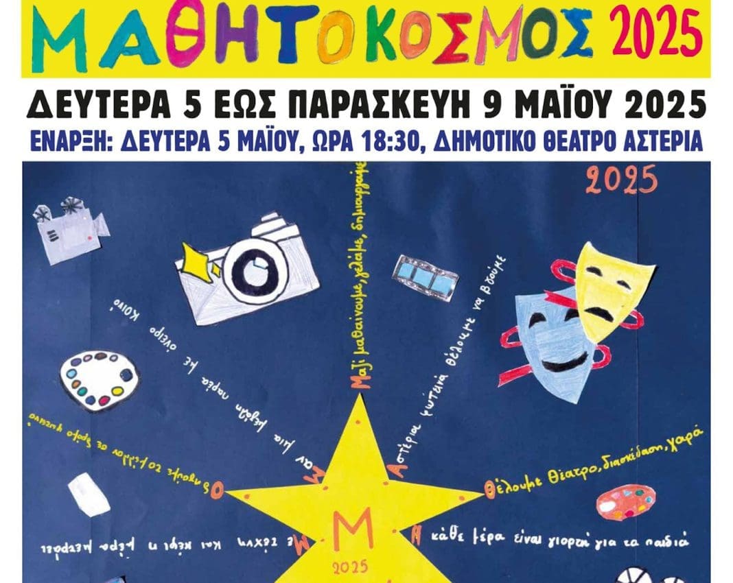 Το μεγαλύτερο πολιτιστικό γεγονός των σχολείων της ΠΕ Σερρών ανοίγει τις πύλες του για μια ακόμα χρονιά. Τελετή έναρξης τη Δευτέρα 5 Μάϊου στις 18.30 στο ΔΗΠΕΘΕ Σερρών “Αστέρια”. Διάρκεια 5-9 Μάϊου. Πρόγραμμα Έναρξης Μαθητόκοσμου 2025:...