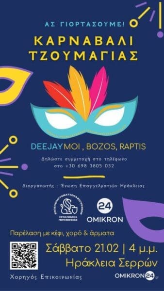 Η Ηράκλεια Σερρών ετοιμάζεται να φορέσει τα γιορτινά της το Σάββατο 21 Φεβρουαρίου, καθώς το «Καρναβάλι Τζουμαγιάς» επιστρέφει δυναμικά μετά από πολλά χρόνια, αναβιώνοντας ένα από τα πιο ζωντανά και αγαπημένα έθιμα της περιοχής.