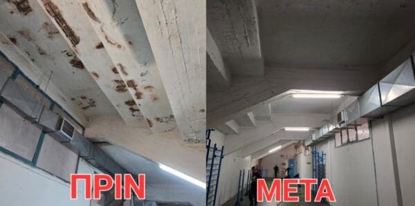 Συγκεκριμένα, πραγματοποιήθηκαν χρωματισμοί στους εσωτερικούς χώρους, δίνοντας μια νέα, φωτεινή και σύγχρονη εικόνα στο γυμναστήριο. Έγιναν εργασίες αποκατάστασης και ενίσχυσης των τοίχων με ειδικά επιχρίσματα, καθώς και προετοιμασία των επιφανειών, ώστε να εξασφαλιστεί αντοχή στον χρόνο και άρτιο αισθητικό αποτέλεσμα. Ιδιαίτερη έμφαση δόθηκε και στον τομέα του ηλεκτροφωτισμού, με την τοποθέτηση νέου ηλεκτρολογικού πίνακα και την πλήρη αναβάθμιση της ηλεκτρολογικής εγκατάστασης. Τα παλιά φωτιστικά σώματα αποξηλώθηκαν και αντικαταστάθηκαν με νέα, σύγχρονα και ενεργειακά αποδοτικά, προσφέροντας καλύτερο φωτισμό και μεγαλύτερη ασφάλεια στους αθλητές.