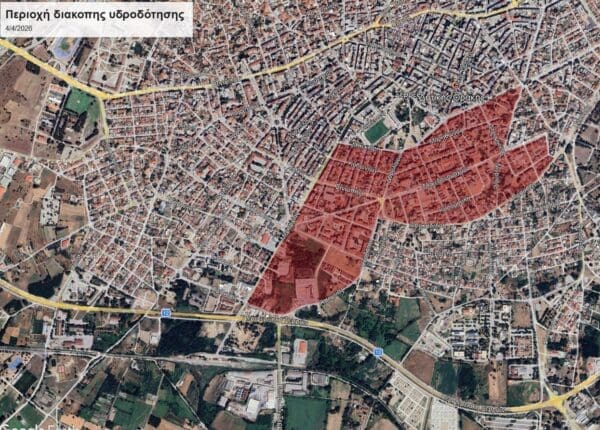 Συγκεκριμένα η περιοχή που επηρεάζεται από τη διακοπή υδροδότησης είναι η περιοχή που περικλείεται από τις οδούς: