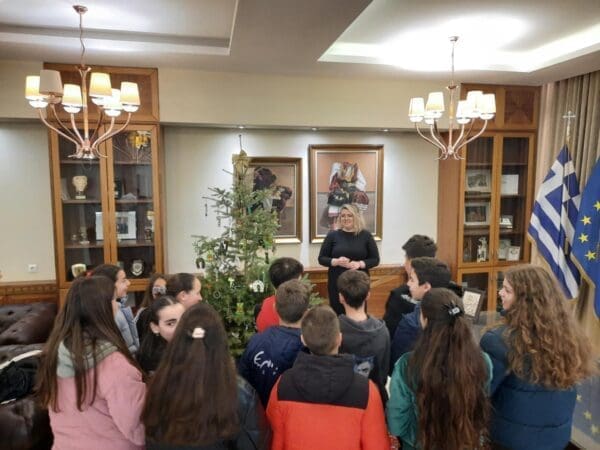 Το Δημαρχιακό Μέγαρο Σερρών «πλημμύρισε» από χριστουγεννιάτικες μελωδίες. Το πρωί της Παρασκευής 19 Δεκεμβρίου 2025, οι μαθήτριες και οι μαθητές του 1ου Γενικού Λυκείου Σερρών, επισκέφθηκαν το Δημαρχείο και έψαλαν τα κάλαντα των Χριστουγέννων, με τη συνοδεία μουσικών οργάνων.