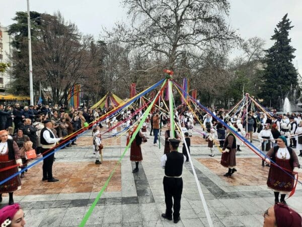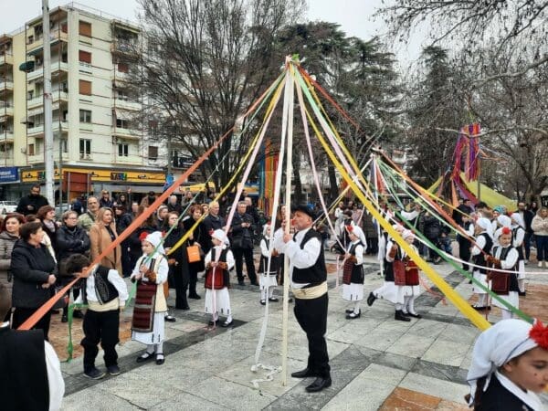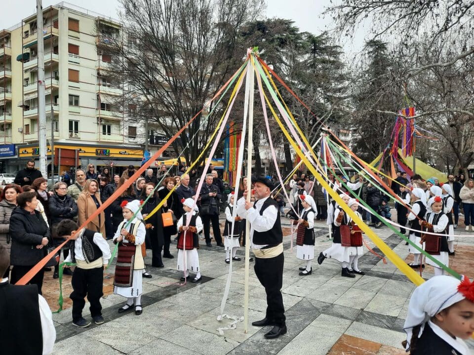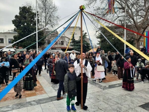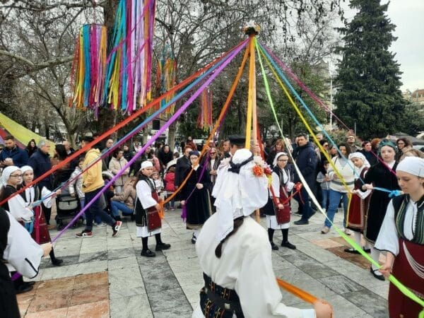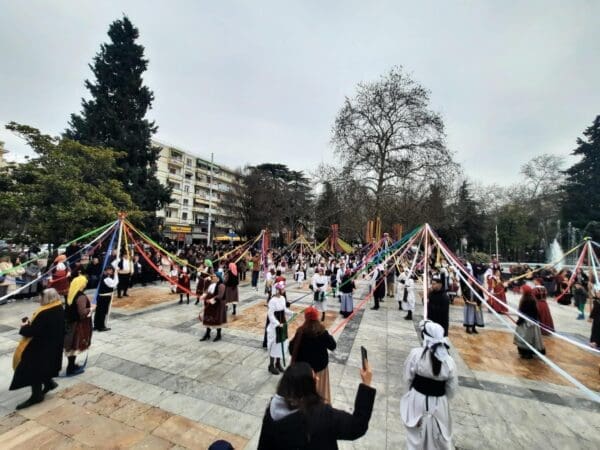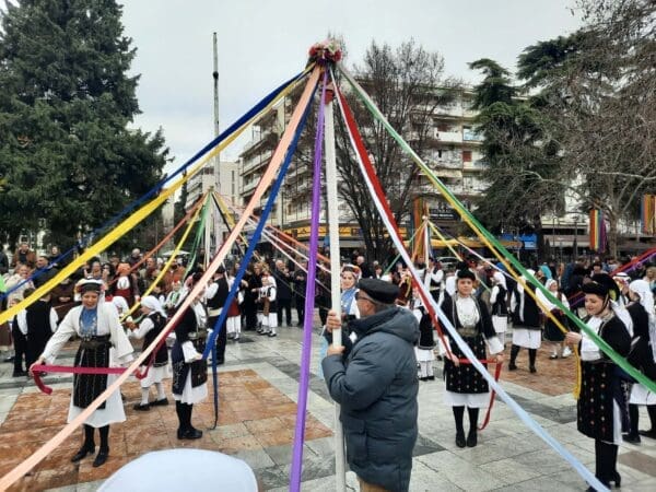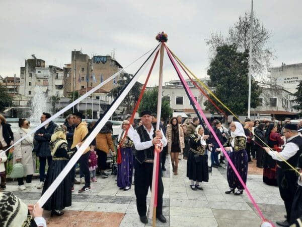 Η πομπή, συνοδευόμενη από ζουρνάδες, νταούλια και παραδοσιακές φορεσιές, δημιούργησε μία γιορτινή ατμόσφαιρα στο κέντρο της πόλης. Μετά το «Γαϊτανάκι» ακολούθησε γλέντι με παραδοσιακούς χορούς