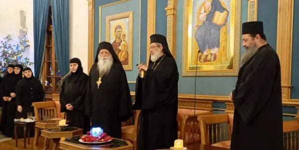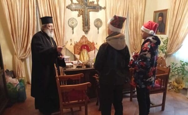 Άκουσε κάλαντα ύμνους και τραγούδια από τις μοναχές προσεφώνησε όλους με εορταστικά λόγια και όλοι έλαβαν εορταστικά κεράσματα.