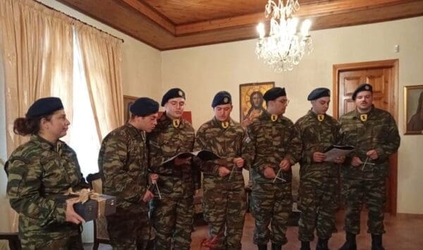 Ξεχωριστή νότα αποτέλεσαν η ομάδα των στρατιωτών του 567 Τάγματος Πεζικού της Ταξιαρχίας οι οποίοι με τον διοικητή τους προσήλθαν και με όμορφο τρόπο έψαλλαν τα κάλαντα.