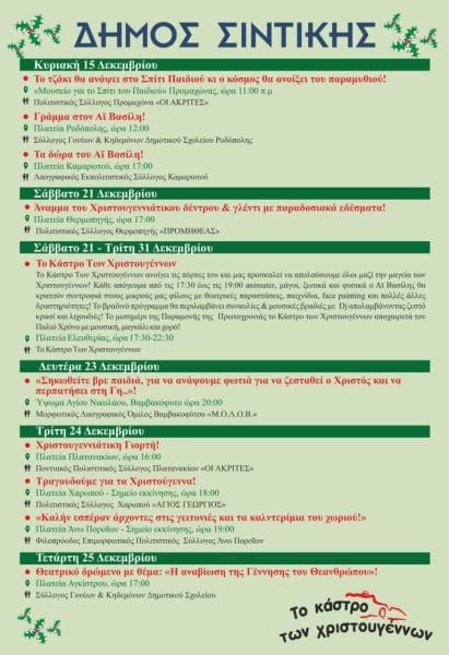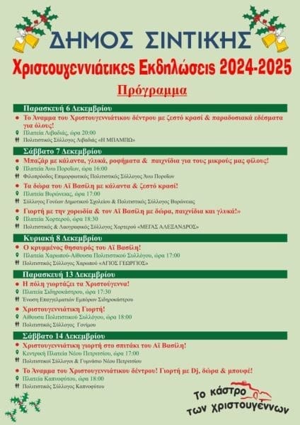 Δήμος Σιντικής: Το πρόγραμμα των Χριστουγεννιάτικων εκδηλώσεων