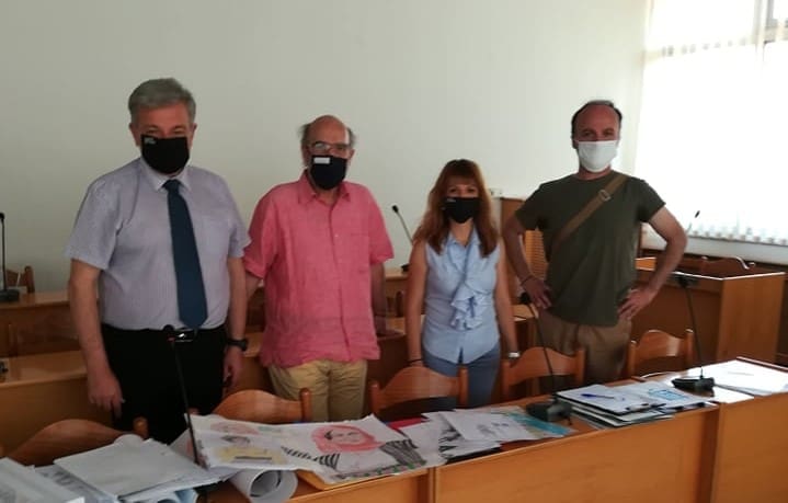 Στην ευχάριστη θέση να φιλοξενήσουν στο Δημαρχείο Σιντικής τον έμπειρο και καταξιωμένο εικαστικό Βασίλη Βαφειάδη, βρέθηκαν ο Δήμαρχος Σιντικής Φώτης Δομουχτσίδης και η Αντιδήμαρχος Πολιτισμού Σουλτάνα Ρόδη, στo πλαίσιo της αξιολόγησης των έργων ζωγραφικής τα οποία φιλοτεχνήθηκαν από τους μαθητές του Δήμου και έλαβαν μέρος στο διαγωνισμό ΖΩΓΡΑΦΙΚΗΣ-ΔΙΗΓΗΜΑΤΟΣ-ΒΙΟΓΡΑΦΙΑΣ του Δήμου Σιντικής, με θέμα τα 200 χρόνια από την Ελληνική Επανάσταση .