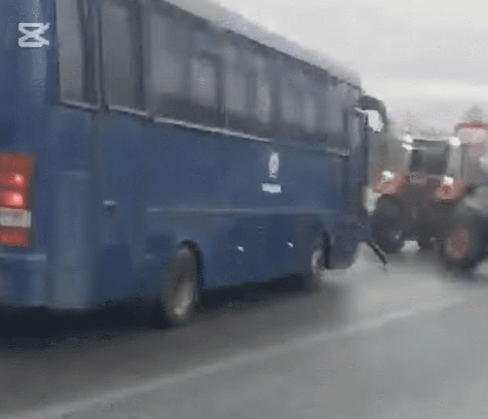 Ένταση στις Σέρρες: Αστυνομικό λεωφορείο εμβόλισε τρακτέρ – Καταγγελίες αγροτών για «επίθεση» (Βίντεο)