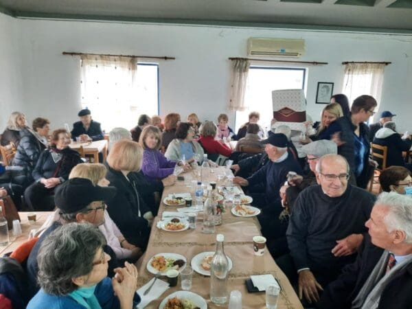 Τα μέλη του ΚΑΠΗ είχαν την ευκαιρία να ανταλλάξουν ευχές για τη νέα χρονιά και να απολαύσουν ένα όμορφο και «ζεστό» μεσημέρι με φαγητό, μουσική και χορό.