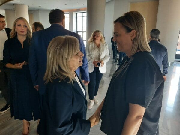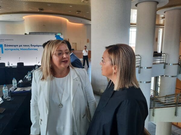Στο περιθώριο της σύσκεψης, η Δήμαρχος Σερρών είχε την ευκαιρία να συζητήσει και να ανταλλάξει απόψεις, με την Περιφερειάρχη Κεντρικής Μακεδονίας Αθηνά Αηδονά και με τους συναδέλφους της Δημάρχους από την Κεντρική Μακεδονία.