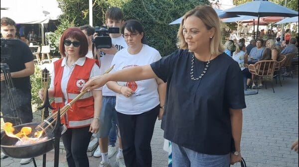Η κ. Μητλιάγκα παρέλαβε τη Αιμοδοτική φλόγα από λαμπαδηδρόμους- μέλη του Ελληνικού Ερυθρού Σταυρού-Περιφερειακό Τμήμα Σερρών και στη συνέχεια άναψε τον βωμό στον εξωτερικό χώρο του Δημαρχείου, στέλνοντας ένα ηχηρό μήνυμα ανθρωπιάς, αλληλεγγύης και εθελοντισμού.