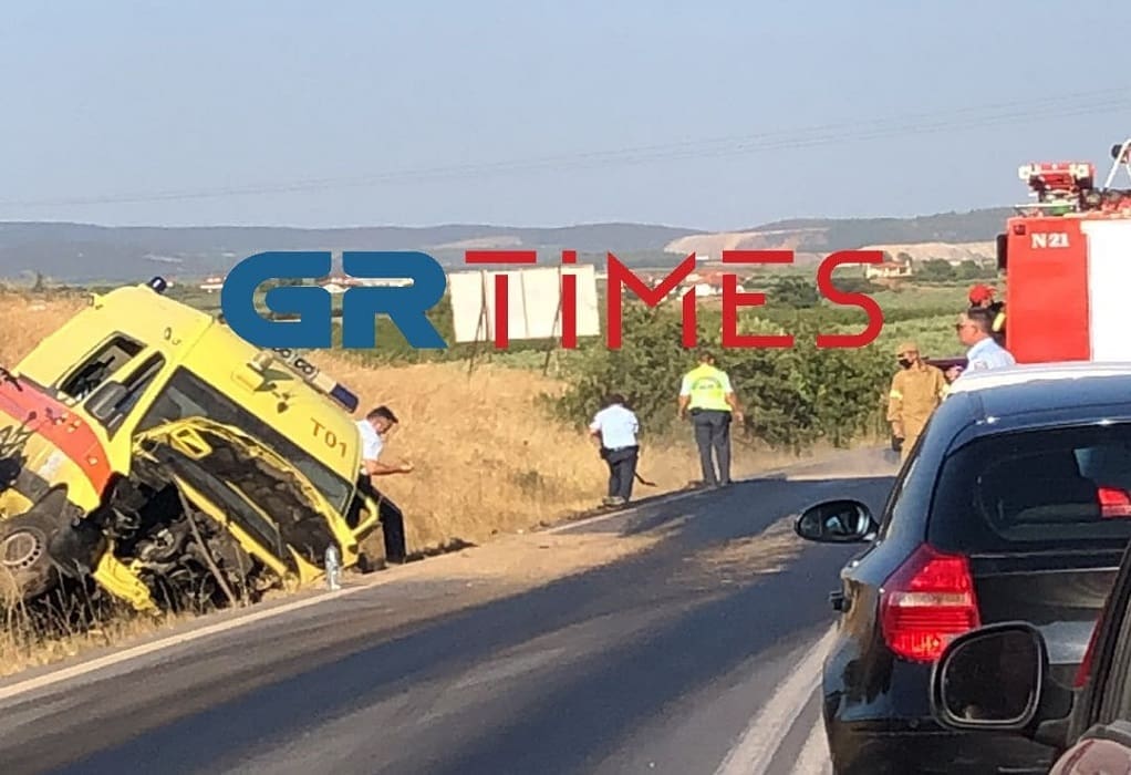 Από το τροχαίο τραυματίστηκαν δύο διασώστες που επέβαιναν στο ασθενοφόρο του ΕΚΑΒ και ένας ακόμα πολίτης. Οι τραυματίες μεταφέρθηκαν με ασθενοφόρο στο νοσοκομείο Πολυγύρου με ελαφρές κακώσεις.