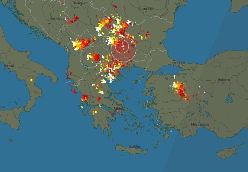 Καταγραφή ηλεκτρικών εκκενώσεων αυτή την ώρα (χάρτης)