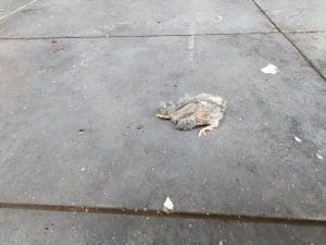 Μάλιστα όταν τελείωσε, κατέβηκε κάτω στο πεζοδρόμιο με σκούπα κ φαράσι ώστε να μαζέψει και να πετάξει τα νεκρά πουλάκια στα σκουπίδια για να μη μείνει κανένα στοιχείο !