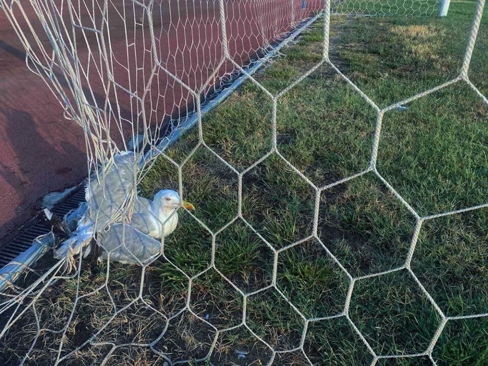 Εδώ και λίγες ώρες ένας γλάρος έχει εγκλωβιστεί στα δίχτυα εστίας στο Δημοτικό Στάδιο “ΑΝΘΗ ΚΑΡΑΓΙΑΝΝΗ”, στην Καβάλα.