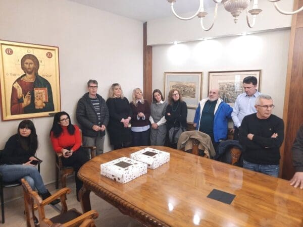 Τις θερμές τους ευχές για μία νέα χρονιά με υγεία, δύναμη και δημιουργικότητα απηύθυναν και οι πρόεδροι των συλλόγων δημοτικών υπαλλήλων, Λευτέρης Κατιρτζόγλου και Άνθιμος Αναστασιάδης.