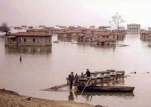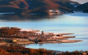 Στον πυθμένα της λίμνης, είχε στήσει οικισμό ο σκηνοθέτης Θεόδωρος Αγγελόπουλος για την ταινία «Το λιβάδι που δακρύζει». Το χωριό ανεγέρθηκε στα πρότυπα των επαρχιακών οικισμών της Μακεδονίας της δεκαετίας του ’30 μέσα στα νερά της λίμνης. Ο Αγγελόπουλος περίμενε ο καιρός να είναι συννεφιασμένος και η ομίχλη να καλύψει τα νερά της λίμνης, ώστε να πάρει τα πλάνα που ήθελε….