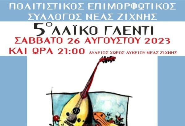 Το Σάββατο 26 Αυγούστου στον αύλειο χώρο του Γυμνασίου Λυκείου Νέας Ζίχνης, θα πραγματοποιηθεί το 5ο Λαϊκό γλέντι!