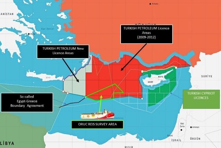 Μέσω του χάρτη, η Άγκυρα προαναγγέλλει έρευνες του Oruc Reis στην περιοχή που οριοθετήθηκε πρόσφατα στη συμφωνία της Ελλάδας με την Αίγυπτο, δίπλα από την Κάρπαθο!