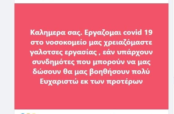 Καλημερα σας. Εργαζομαι covid 19 στο νοσοκομείο μας χρειαζόμαστε γαλοτσες εργασίας , εάν υπάρχουν συνδημότες που μπορούν να μας δώσουν θα μας βοηθήσουν πολύ