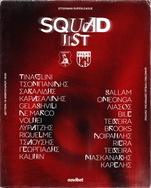 Εκτός αποστολής έμειναν ο τιμωρημένος Ίβαν, οι τραυματίες Αρμουγκόμ και Ουαγκέ και οι Μαρίνος, Παυλής, Πουρλιοτόπουλος, Ρουμιάντσεβ.