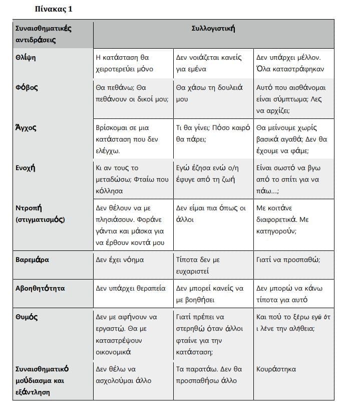 Οι επιπτώσεις της απομόνωσης στην ψυχική υγεία του ατόμου συνοψίζονται στον πίνακα 1.