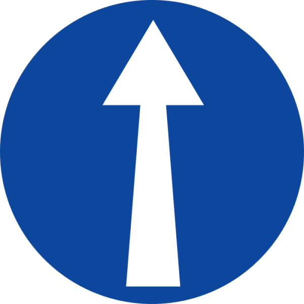 Η Ρ-49, με το λευκό βέλος στο κέντρο της, υποδηλώνει την υποχρεωτική κατεύθυνση πορείας προς τα εμπρός.