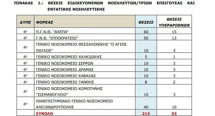 Δείτε αναλυτικά τις θέσεις που προβλέπονται για τα νοσοκομεία.