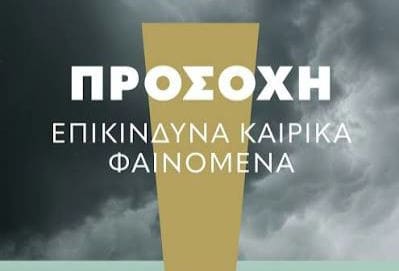 Τα φαινόμενα που προβλέπονται περιλαμβάνουν ισχυρές βροχές, καταιγίδες και πιθανότητα χαλαζόπτωσης.