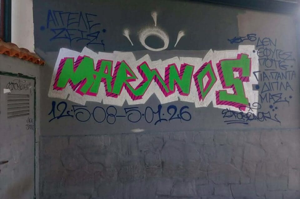 Οι μαθητές του σχολείου αποτύπωσαν σε τοίχο το όνομα «Μαρύνος», το παρατσούκλι με το οποίο φώναζαν τον αγαπημένο τους φίλο, ο οποίος «έφυγε» άδικα από τη ζωή την παραμονή των Θεοφανείων. Δίπλα στο γκράφιτι έγραψαν το όνομά του, «Άγγελος», συνοδευόμενο από τη φράση: