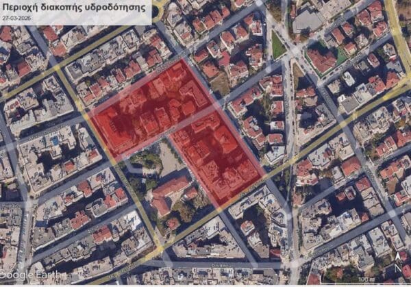 «Λόγω αναγκαίας επισκευής βλάβης δευτερεύοντος δικτύου ύδρευσης επί της οδού Χατζηπανταζή, αύριο Παρασκευή 27-03-2026 και στις ώρες 09:00’ έως 13:00’, θα σημειωθεί διακοπή υδροδότησης στην περιοχή που περικλείεται από τις οδούς Μ. Αλεξάνδρου, Παπασυνοδινού, Ρωμανού, 20ης Σεπτεμβρίου, Αλέκου Παναγούλη και Χατζηπανταζή.