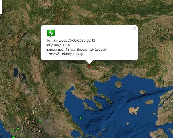 Η μία δόνηση σημειώθηκε στις 08.42.40 π.μ. 13 χιλ. Βόρεια της πόλης Σερρών και είχε μέγεθος 3,1 R και εστιακό βάθος 10 χιλιόμετρα.