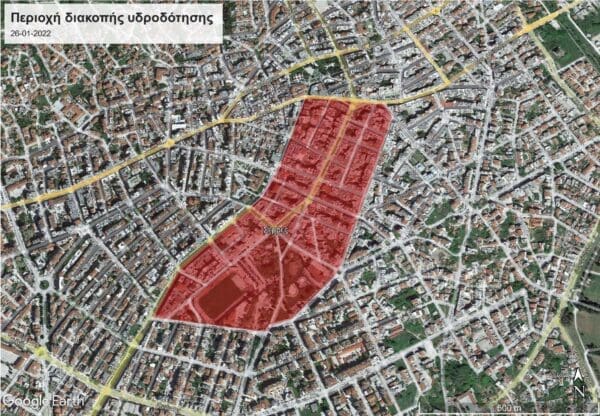 Λόγω αναγκαίας επισκευής βλάβης στο πρωτεύον δίκτυο ύδρευσης επί της οδού Γ. Παπανδρέου, σήμερα Τετάρτη 26-01-2022 και στις ώρες 09:00’ με 13:00’, θα σημειωθεί διακοπή υδροδότησης στην περιοχή που περικλείεται από τις οδούς: Διον. Σολωμού, Μεραρχίας, Μπεκιάρη, Μαραθώνος, Δυτ. Θράκης και Πλατείας Εμπορίου.