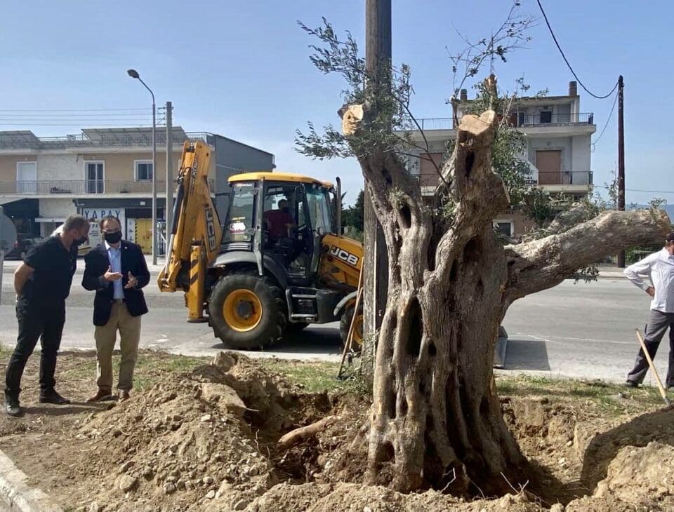 Πρόκειται για το πρώτο από τα συνολικά επτά ελαιόδεντρα που θα μεταφυτευθούν σε επιλεγμένα σημεία από τον Δήμο Σερρών σε συνεργασία με την ΕΡΓΟΣΕ, το Πράσινο Ταμείο και το Υπουργείο Υποδομών και Μεταφορών.