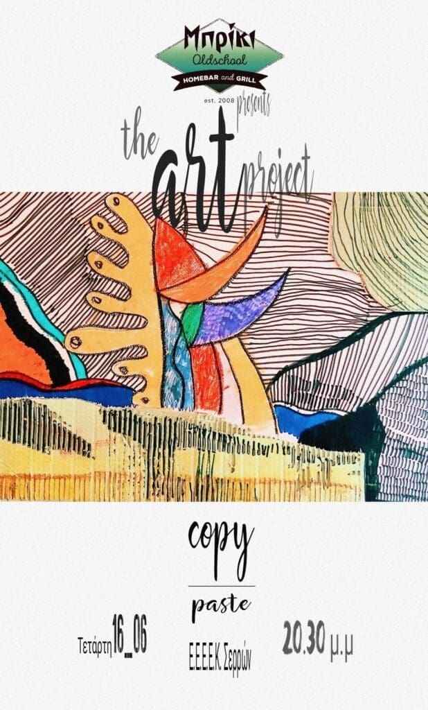 Η Διεύθυνση του Ε.Ε.Ε.Ε.Κ, οι εκπαιδευτικοί και οι μαθητές του, καλούν τους φίλους της τέχνης αλλά και το ευρύ κοινό στη συνάντηση με το copypaste στην πρώτη μετά από καιρό ελεύθερη δράση τους εκτός σχολείου.