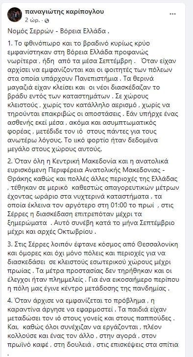 Ο πρόεδρος του Δικηγορικού συλλόγου Σερρών. Παναγιώτης Καρίπογλου, σχολιάζει στον λογαριασμό του στο facebook, την κατάσταση που έχει διαμορφωθεί στις Σέρρες με τα κρούσματα του κορωνοϊού.