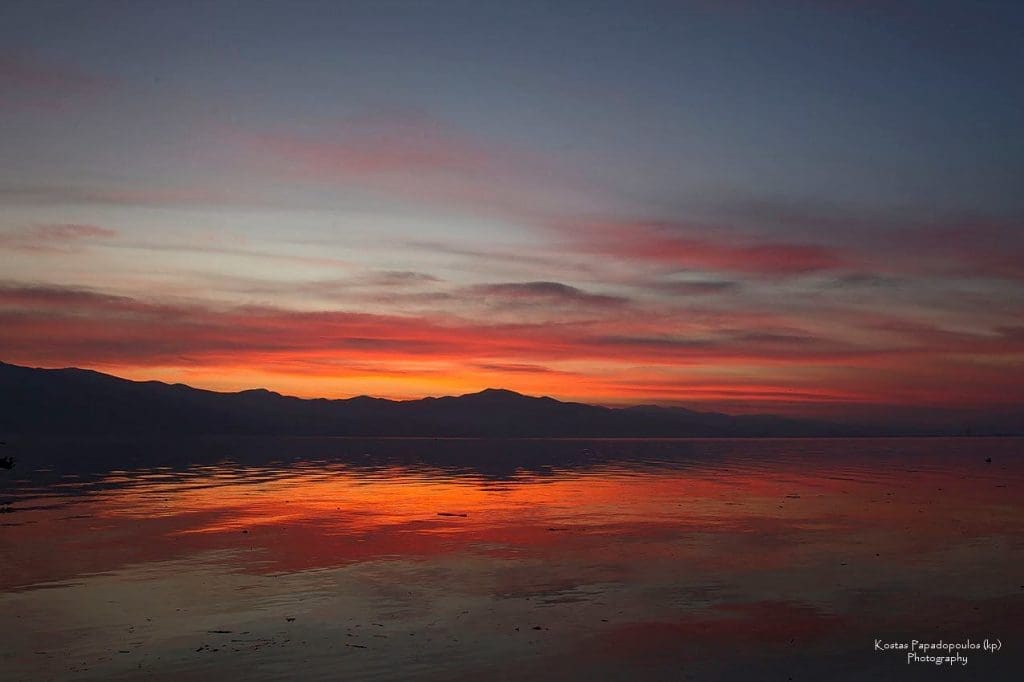 Λίμνη Κερκίνη :τρεις φωτογραφίες μία ημέρα, η ανατολή με το λευκοκίτρινο φως στο λιμανάκι του Λιθοτόπου που σηματοδοτεί την έναρξη της ημέρας, το μπλε του ουρανού με το όρος Κερκίνη στο βάθος λίγο χιονισμένο και τέλος η δύση με το έντονο κόκκινο φως στο ανατολικό ανάχωμα της λίμνης!