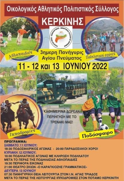 Τριήμερο ποικίλων δράσεων πολιτισμού και αθλητισμού διοργανώνει το διάστημα 11-13 Ιουνίου στην Κερκίνη ο Πολιτιστικός – Οικολογικός – Αθλητικός Σύλλογος της περιοχής.