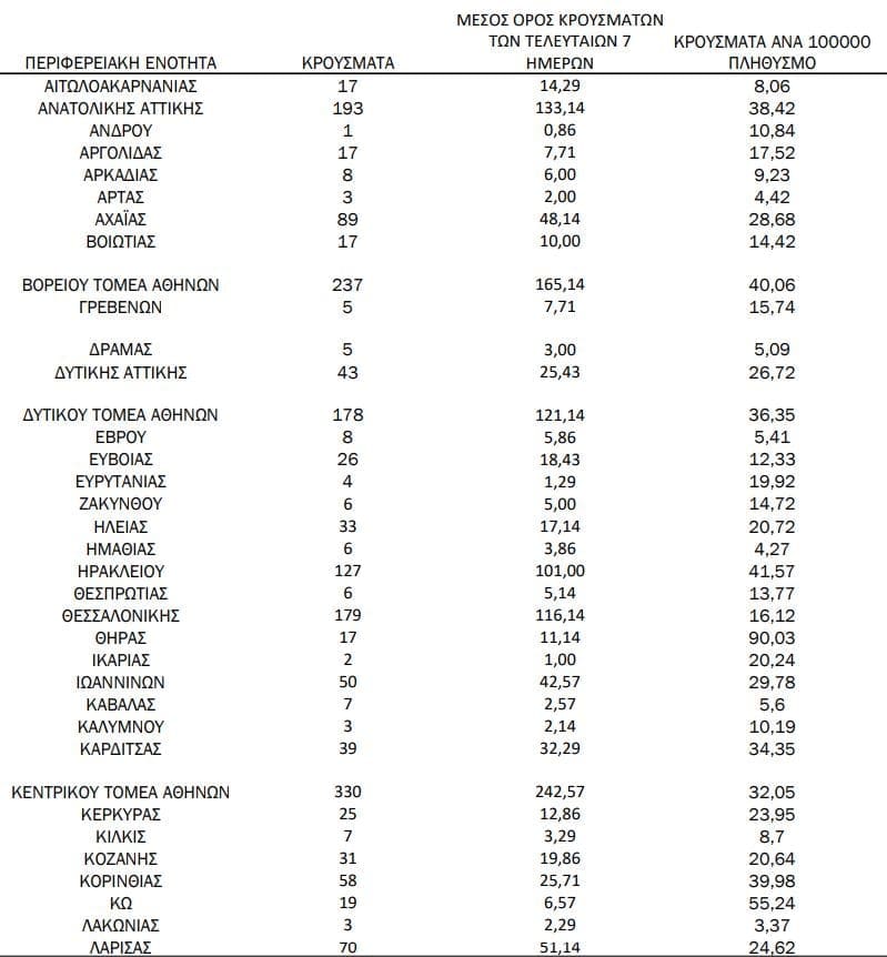 Σημ.: αναγράφονται μόνο οι ΠΕ στις οποίες έχουν καταγραφεί κρούσματα κατά τη σημερινή αναφορά.