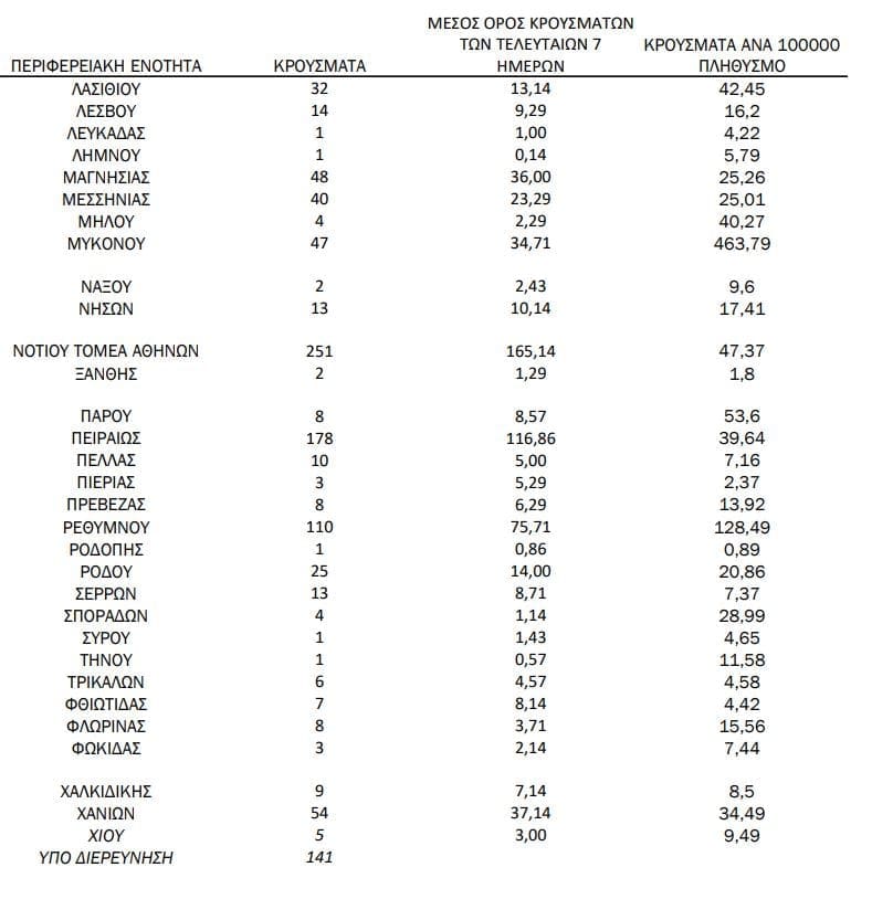 Να θυμίσουμε ότι εχθές, 13/7 στις Σέρρες, είχαν καταγραφεί 16 κρούσματα