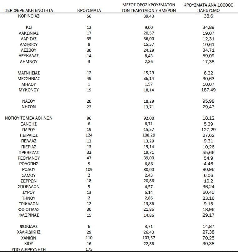 Να θυμίσουμε ότι εχθές, 6/8 στις Σέρρες, είχαν καταγραφεί 31 κρούσματα.
