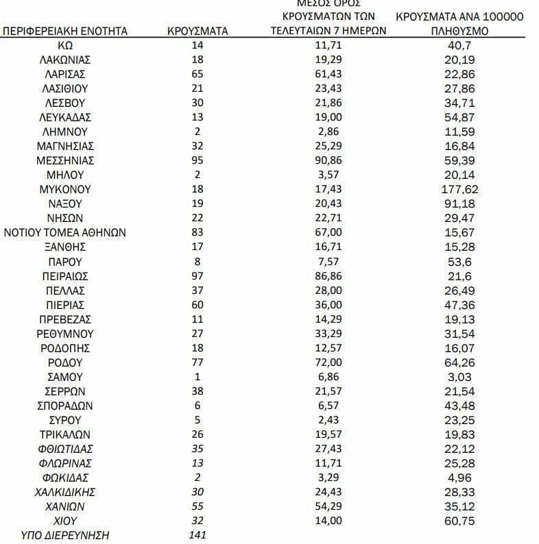 Να θυμίσουμε ότι εχθές, 26/8 στις Σέρρες, είχαν καταγραφεί 25 κρούσματα.
