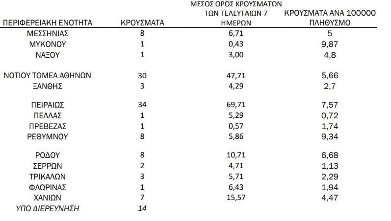 Σημ.: αναγράφονται μόνο οι ΠΕ στις οποίες έχουν καταγραφεί κρούσματα κατά τη σημερινή αναφορά.