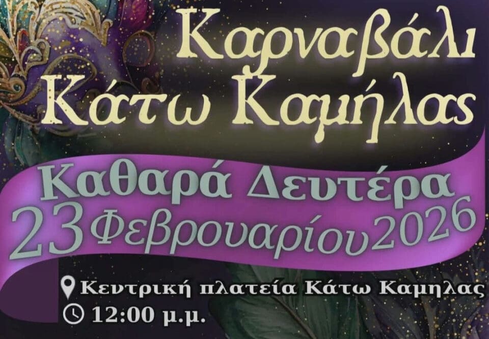 Η Τοπική Κοινότητα Κάτω Καμήλας του Δήμου Σερρών διοργανώνει το καθιερωμένο Καρναβάλι την Καθαρά Δευτέρα 23 Φεβρουαρίου 2026, στις 12.00 μ.μ. στην κεντρική πλατεία του χωριού.
