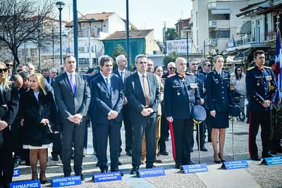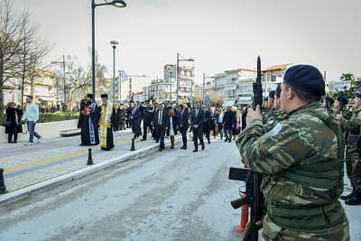 Στην συνέχεια, ο Σεβασμιώτατος, μαζί με τον ιερό Κλήρο, τους Άρχοντες και τον πιστό λαό του Θεού, μετέβησαν εν πομπή, στον χώρο της κεντρικής πλατείας της Νιγρίτης. Εκεί, εψάλη επιμνημόσυνος δέηση, κατετέθησαν στέφανοι, τηρήθηκε ενός λεπτού σιγή στην μνήμη όλων όσων θυσιάσθηκαν για την ελευθερία της Βισαλτίας, εψάλη ο Εθνικός μας Ύμνος και πραγματοποιήθηκε η καθιερωμένη παρέλαση των μαθητικών, στρατιωτικών και πολιτιστικών τμημάτων.